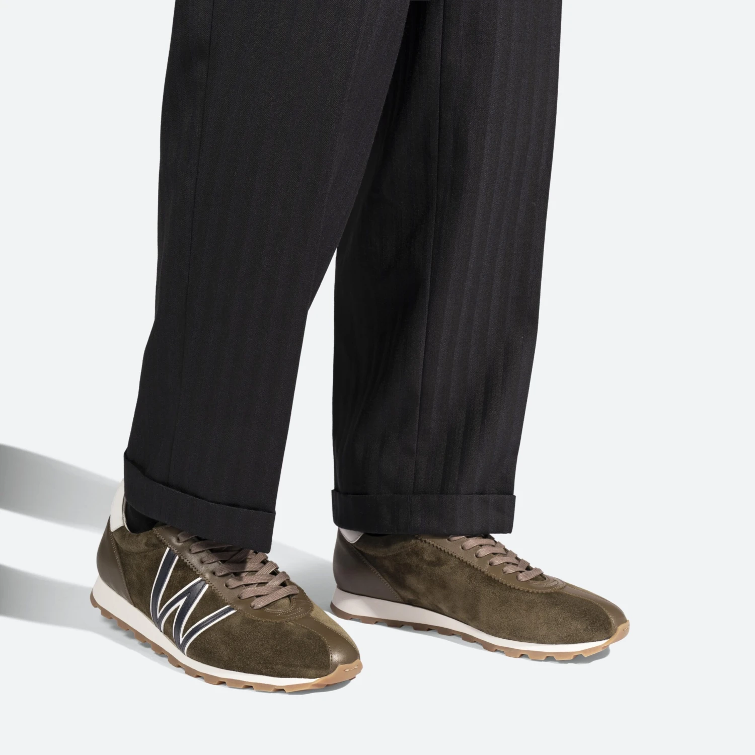 – Cuir veau velours kaki détails kaki marine et blanc